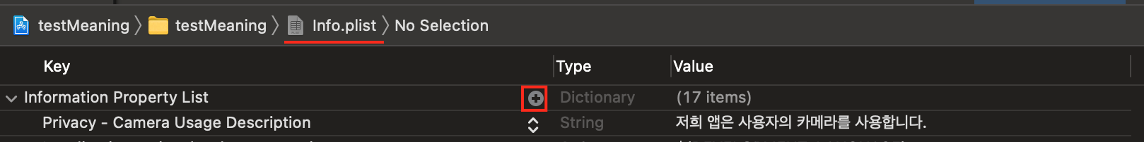 info.plist에 들어가서