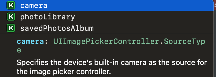 camera(카메라), photoLibrary(사진앨범), savePhotosAlbum(특별한 순간)