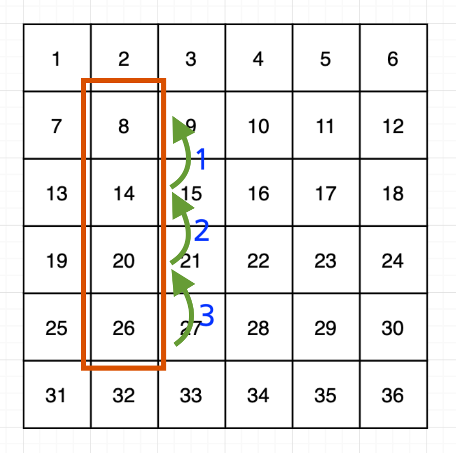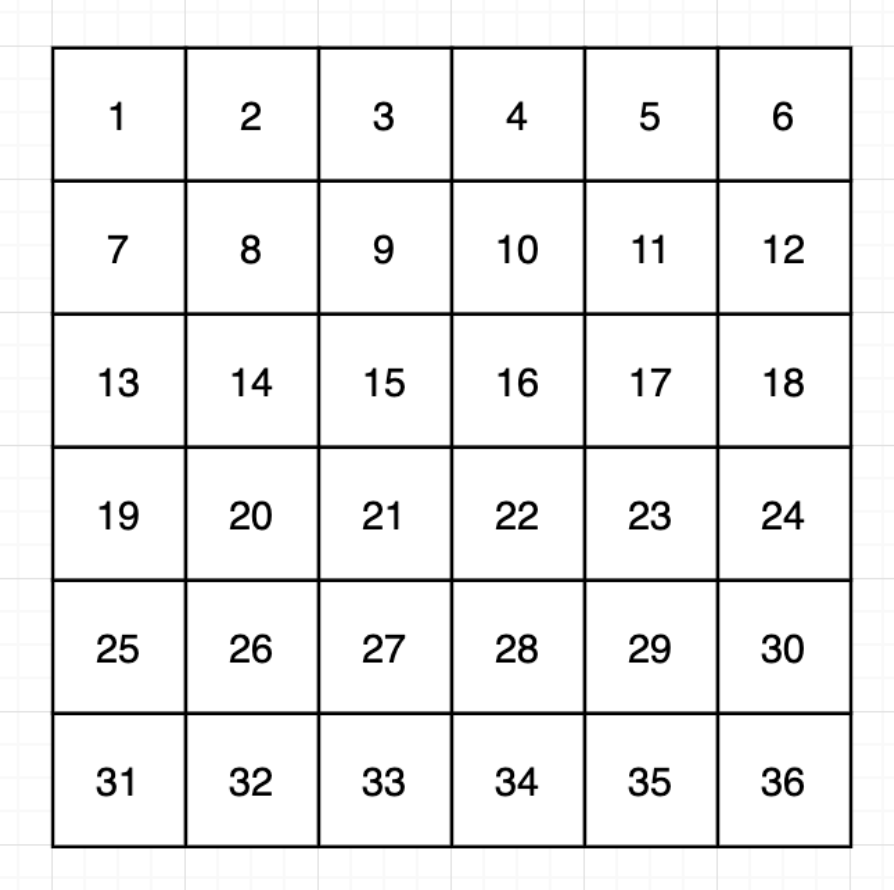 - 처음에 행렬에는 가로 방향으로 숫자가 1부터 하나씩 증가하면서 적혀있습니다.