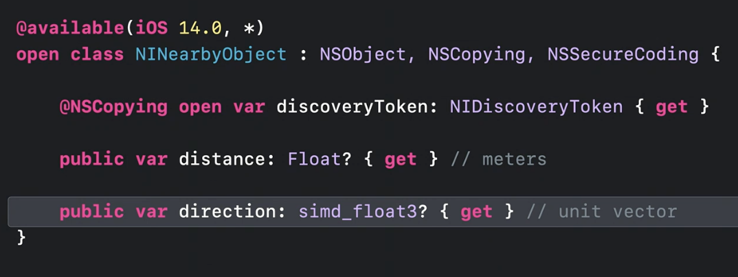 그리고 기기와 액세서리가 서로 가까이 있다면 거리 및 방향을 포함하는 NINearbyObject를 제공
